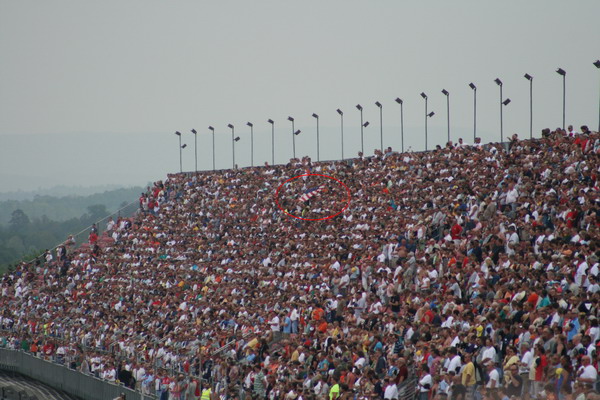 jeff gordon fans vienna and brendon, surrounded by all the other jeff gordon