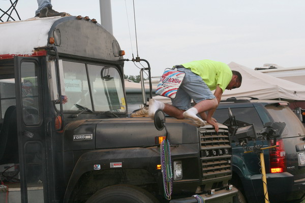 ant tries to wake bryan before he falls off the bus.